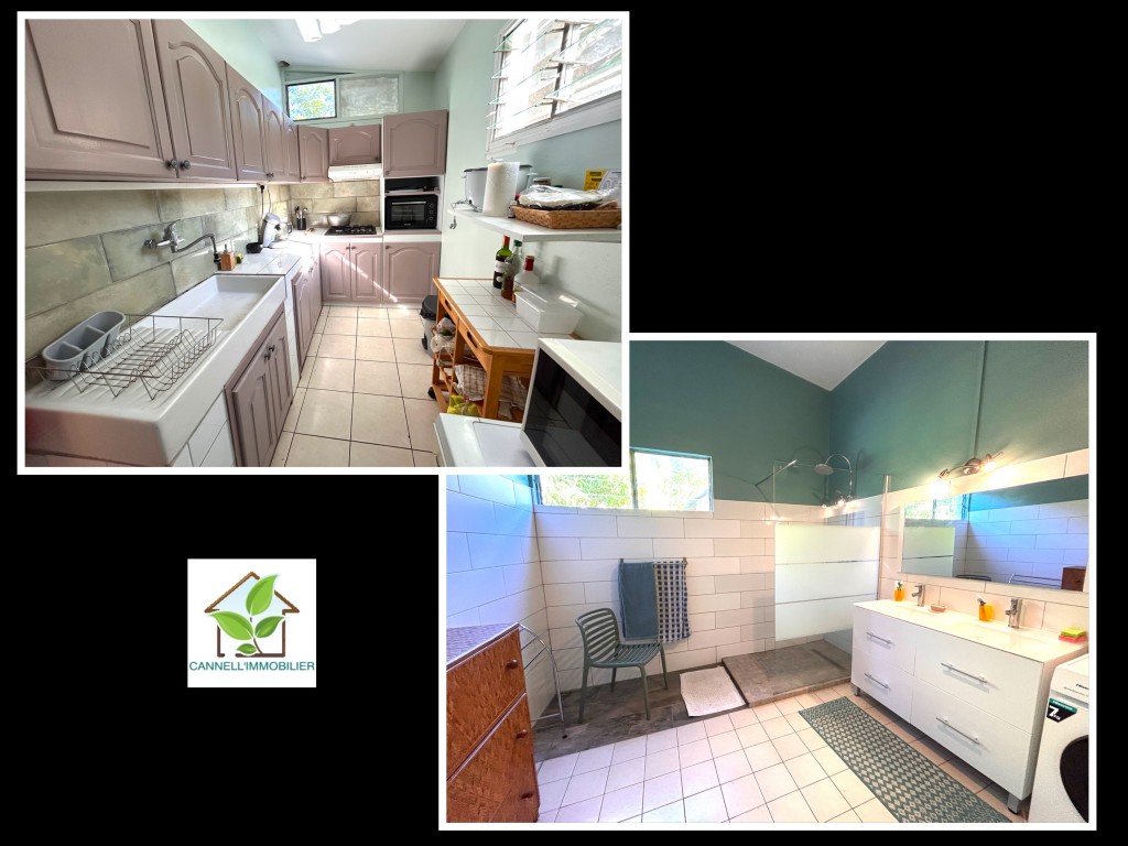 Implantée sur un terrain arboré de 1 100 m² avec de nombreux arbres fruitiers( mangues, litchis, bananes, agrumes, avocats…), cette maison se compose de :